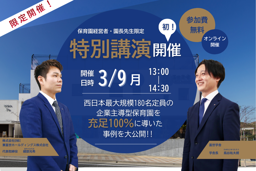 本セミナーを受けて、保育事業の更なる発展を目指しませんか?